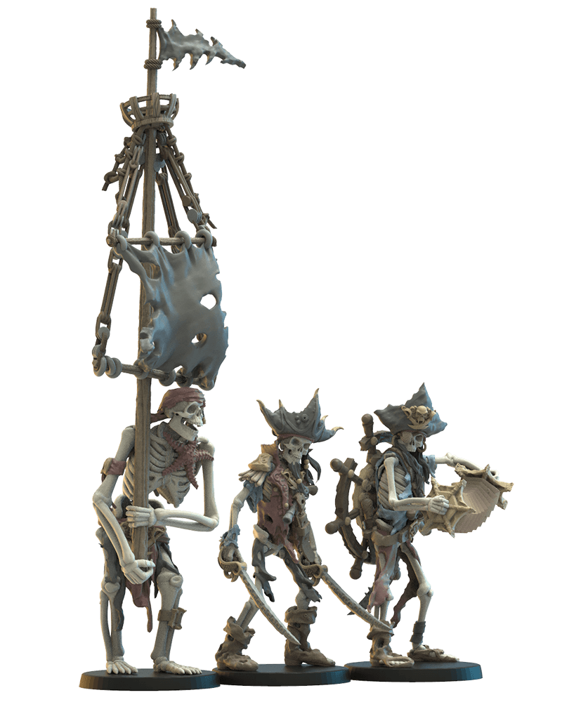 Embárcate en una aventura oscura con los GM Skeleton Buccaneers, una tripulación de esqueletos piratas que surgen de las profundidades para saquear y sembrar el caos. Cada miniatura está impresa en resina 12K de alta definición, capturando con precisión detalles como su vestimenta desgastada, armas oxidadas y expresiones desafiantes.