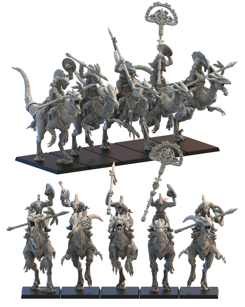 Añade 5 Kuakuauitl cuetzpalli riders a tu ejército de hombres lagarto. Nuestras miniaturas se imprimen en calidad 12k con resina de alta calidad, capturando cada detalle. Nuestro proceso especializado de limpieza y curado asegura una miniatura lista para pintar y desplegar en la batalla.
