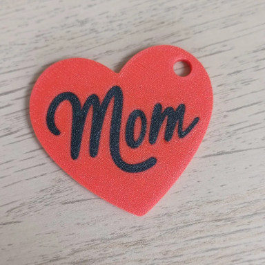 Un pequeño detalle con un gran mensaje: Mom. Este encantador llavero en forma de corazón, impreso en 3D, es el regalo ideal para recordarle todos los días cuánto la valoras. Práctico, bonito y lleno de amor.